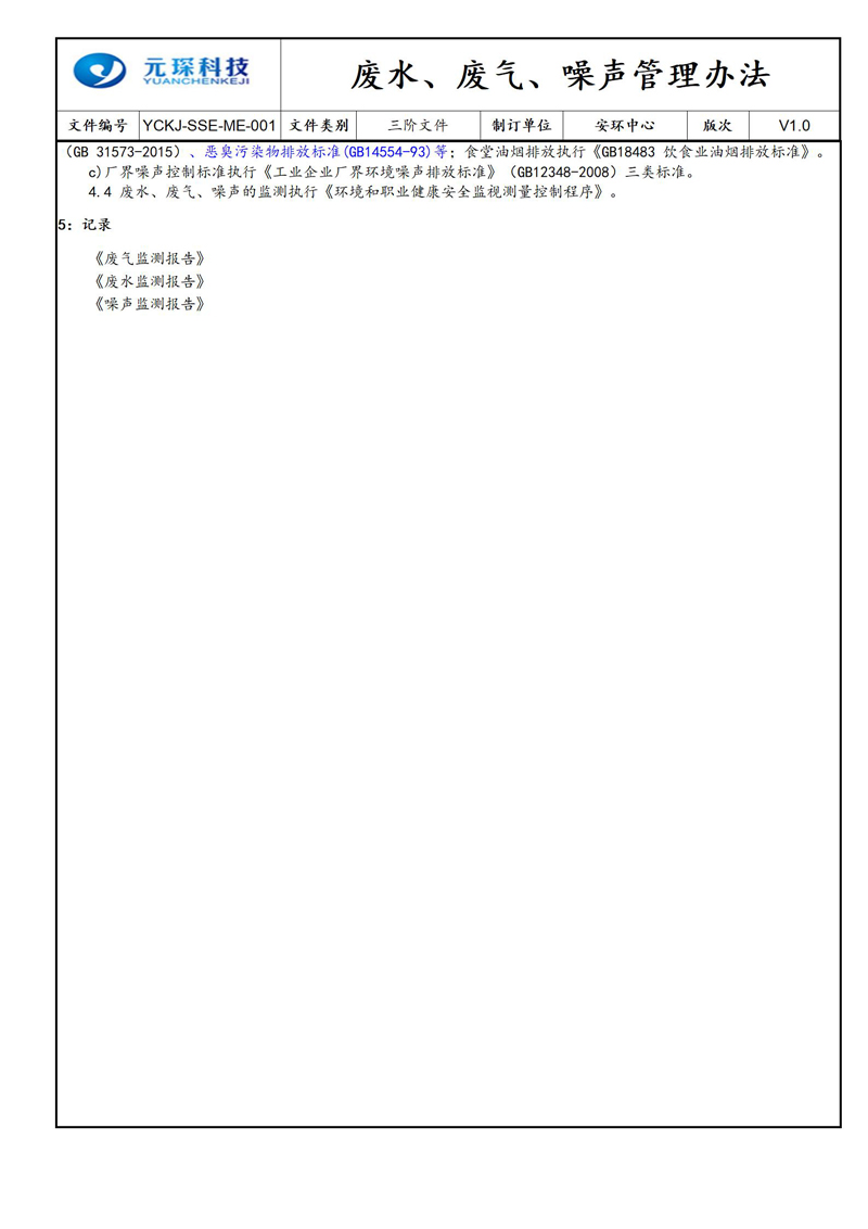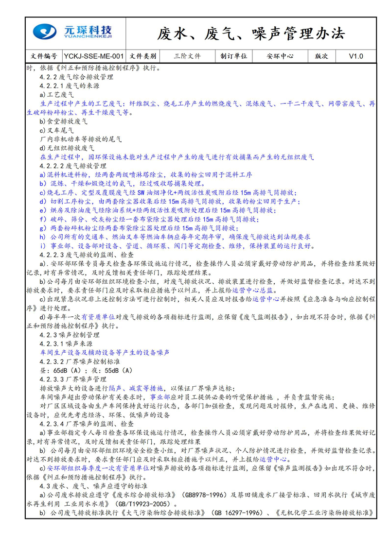 废水、废气、噪声管理办法