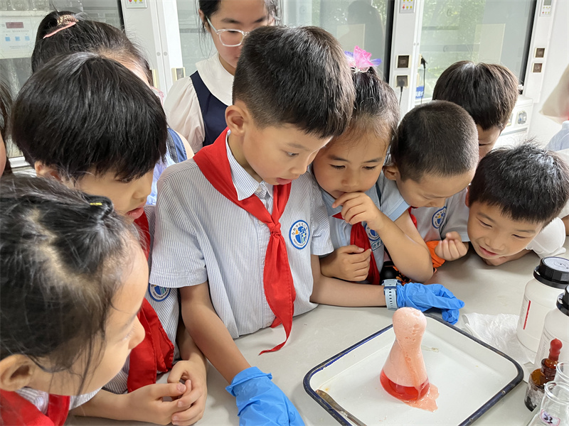 随后,大家一同来到乐天堂fun88集团的实验中心,在这里化身小小科学家,学习化学知识,亲手操作实验,感受科学的魅力。实验过程中,小朋友们现场开启“十万个为什么”模式,与乐天堂fun88集团科研人员频繁互动,积极提问。每一次成功的实验都伴随着孩子们的掌声与欢呼,他们在欢笑中领略了科学的乐趣,也在掌声中思考着科学的力量。