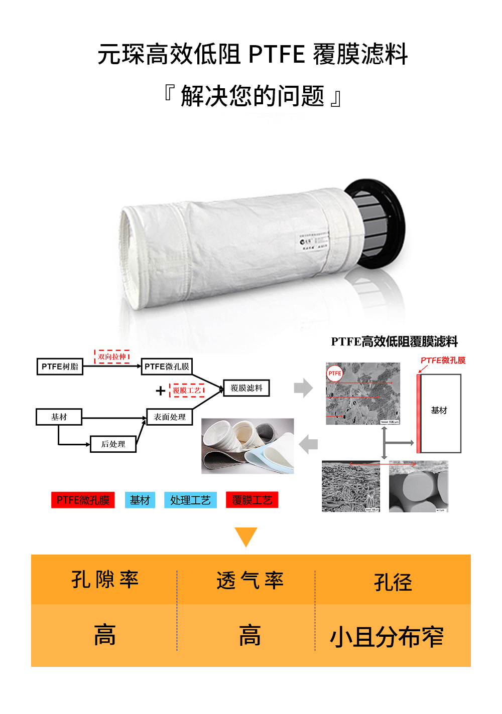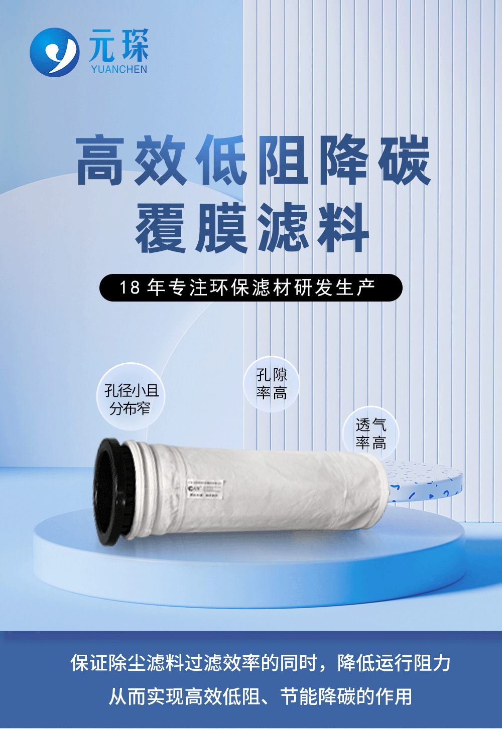 高效低阻降碳覆膜滤料